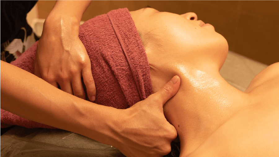 頑固な肩・首こりに、セルフでは届かない深層リンパまで強圧で入れ、根本からケアします。
